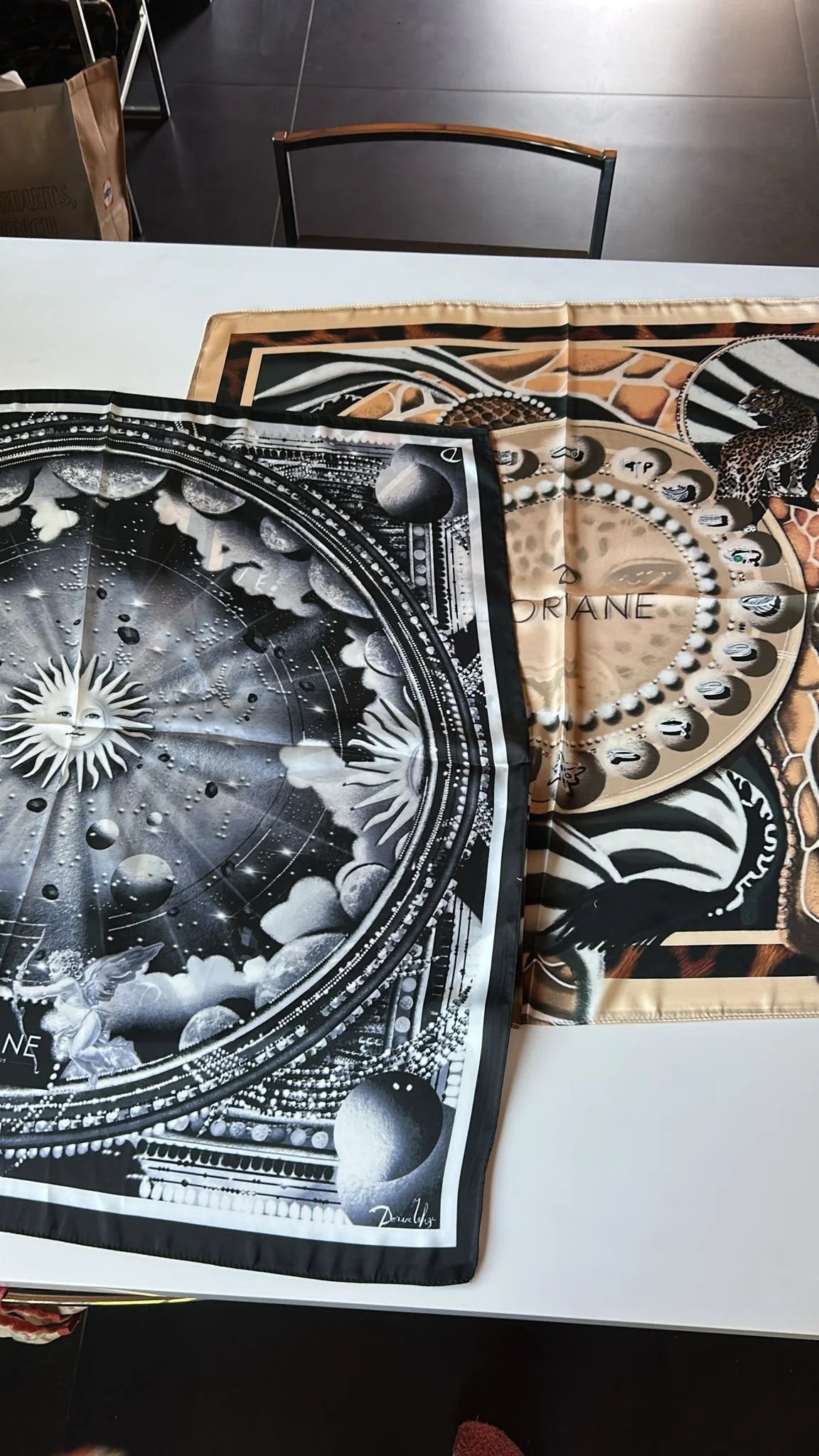 Le premier foulard est “LA DUNE” ou “LE BAISER” les deux foulards emblématiques de ma collection 2025, et ensuite un foulard au choix.