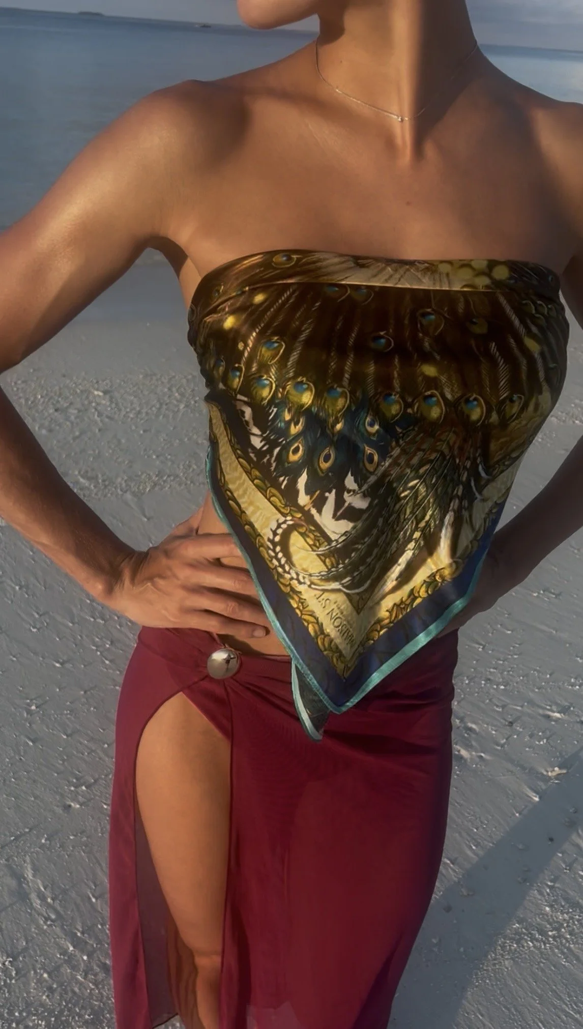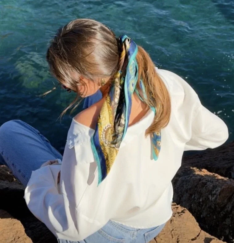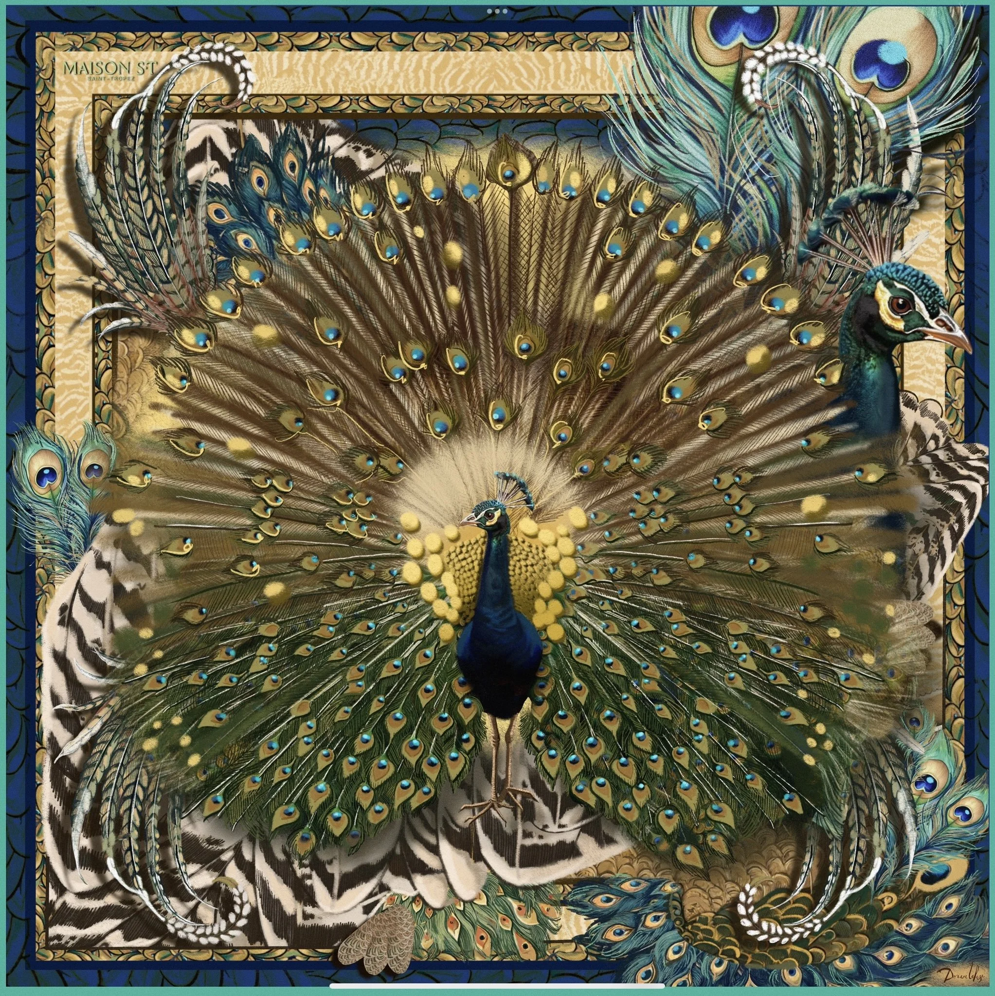 Nous avons imaginé un foulard 100 % soie en édition limitée, orné d’un somptueux paon aux reflets bleu et or. Symbole de beauté et de liberté, ce foulard capture l’éclat du soleil sur la mer et la grâce naturelle de Saint-Tropez un accessoire d’exception, entre élégance et émotion.